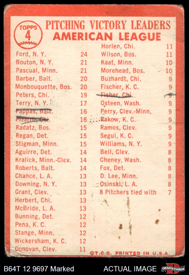 1964 Topps #4 xAP - Whitey Ford / Camilo Pascual / Jim Bouton AL Pitching Leaders 1 - POOR