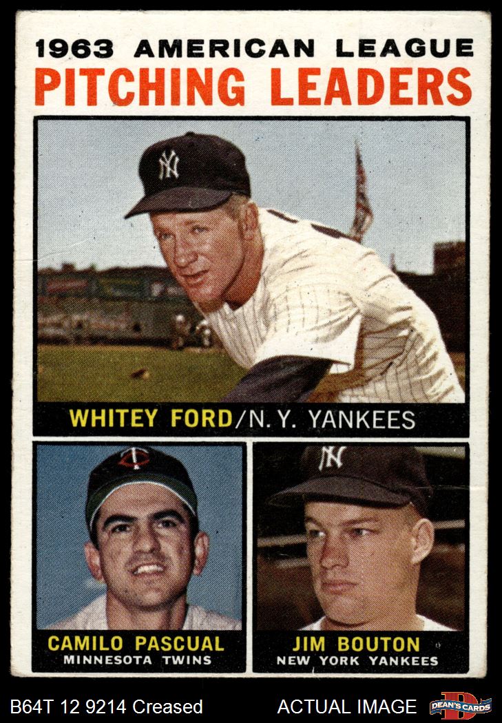 1964 Topps #4 xAP - Whitey Ford / Camilo Pascual / Jim Bouton AL Pitching Leaders 2 - GOOD