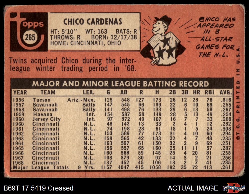 1969 Topps #265 Leo Cardenas 1 - POOR