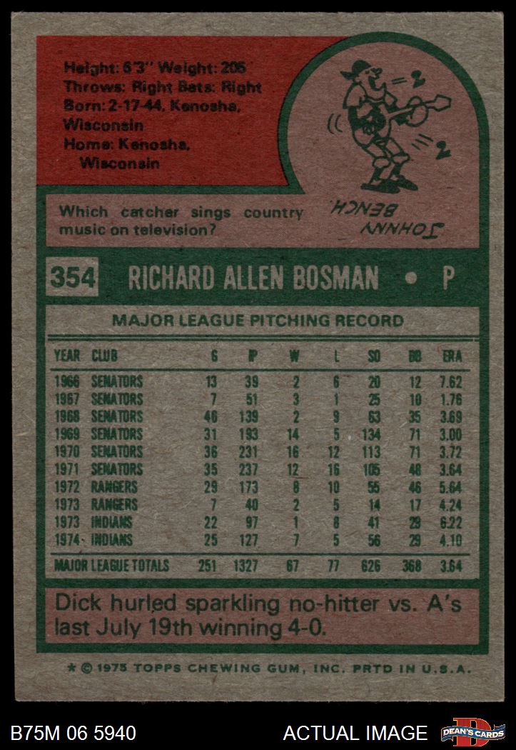 1975 Topps Mini #354 Dick Bosman 7 - NM