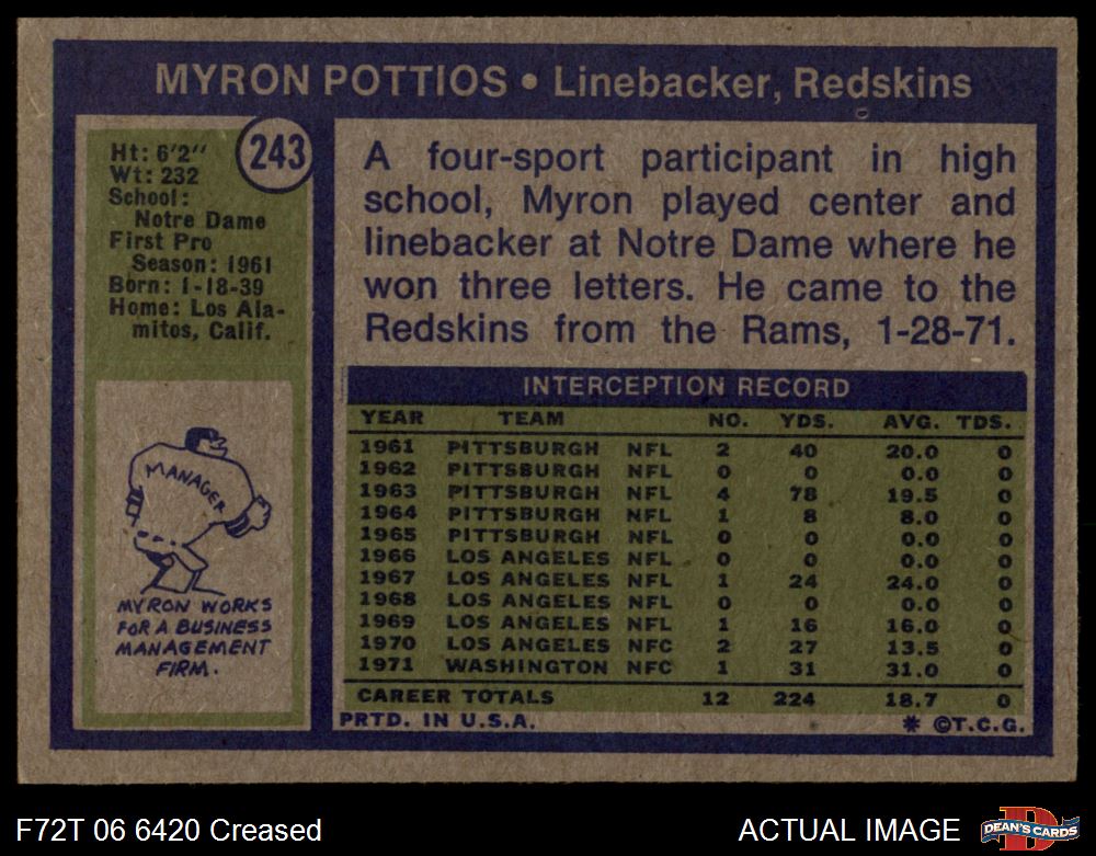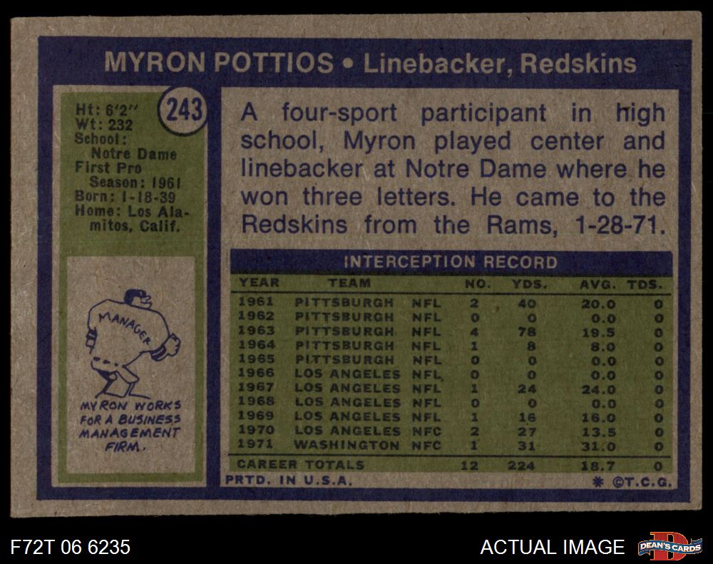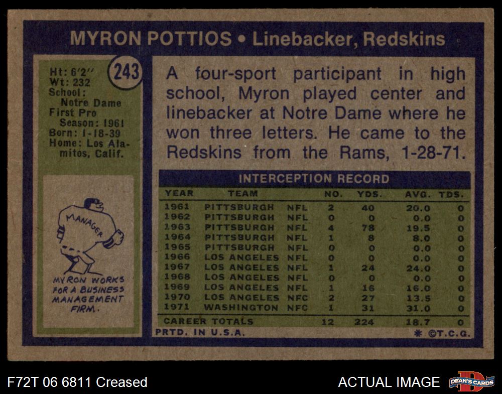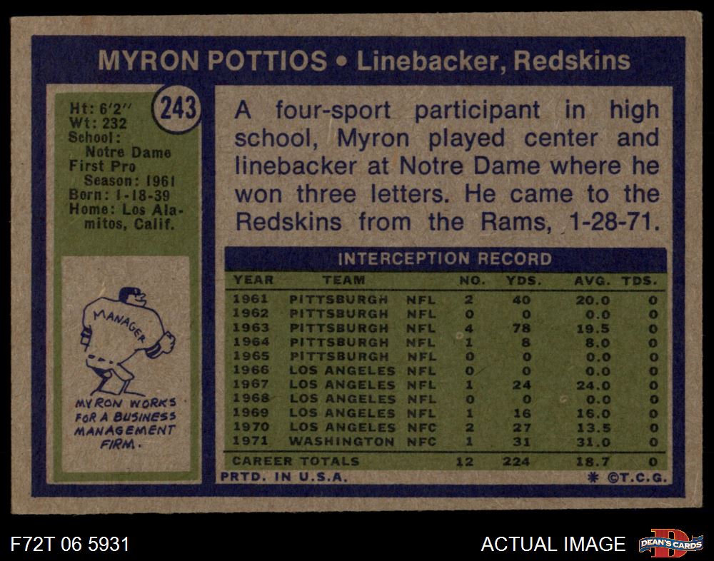 1972 Topps #243 Myron Pottios Front Thumbnail