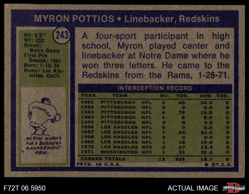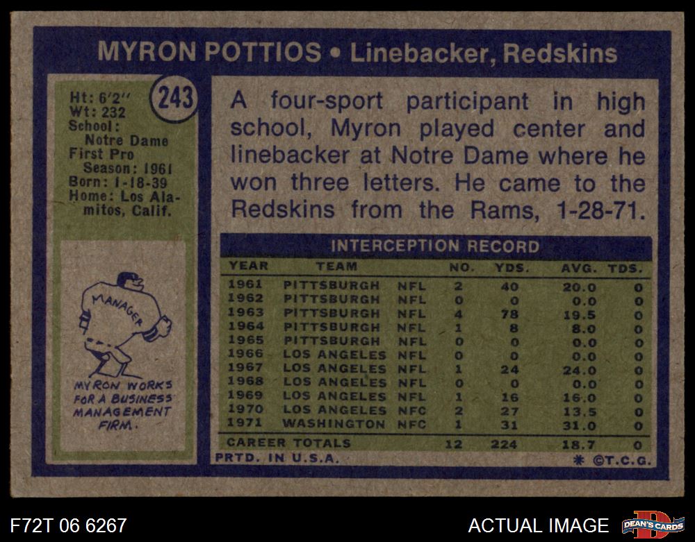 1972 Topps #243 Myron Pottios 4 - VG/EX