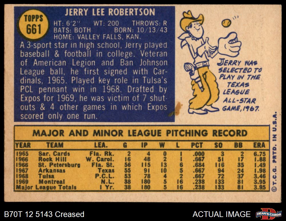 1970 Topps #661 Jerry Robertson 3 - VG