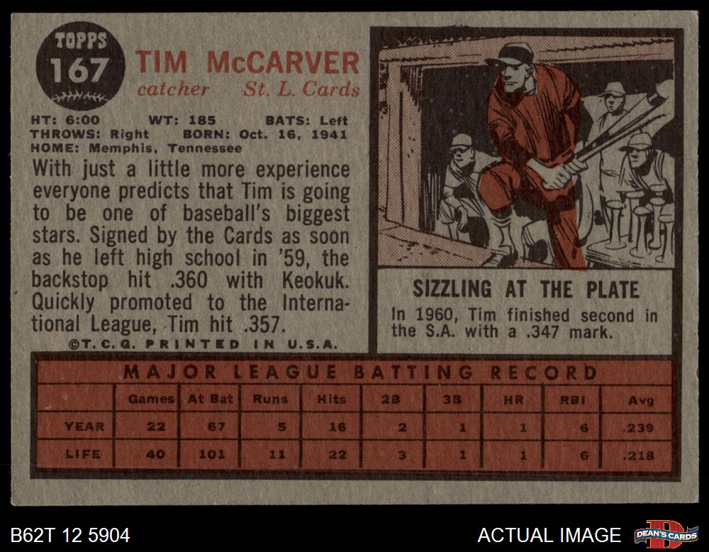 1962 Topps #167 GRN Tim McCarver