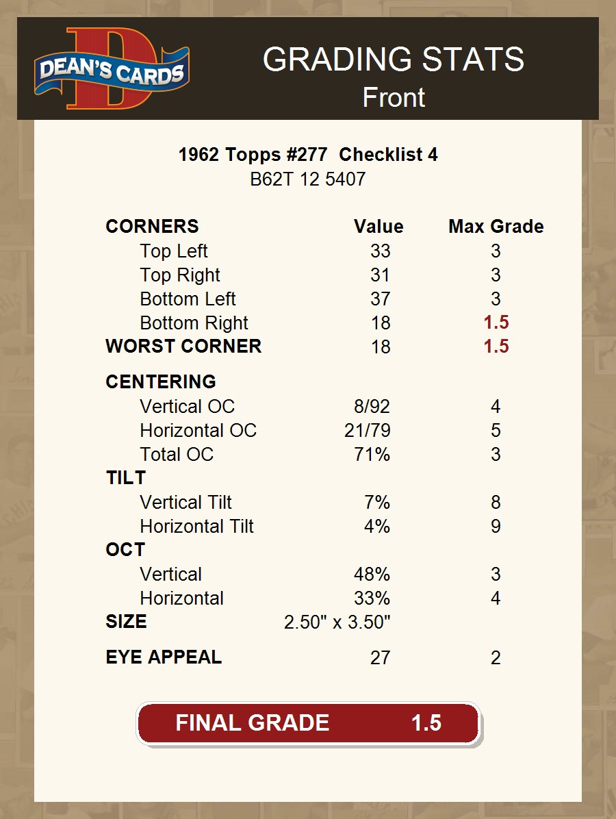 1962 Topps #277 Checklist 4 1.5 - FAIR