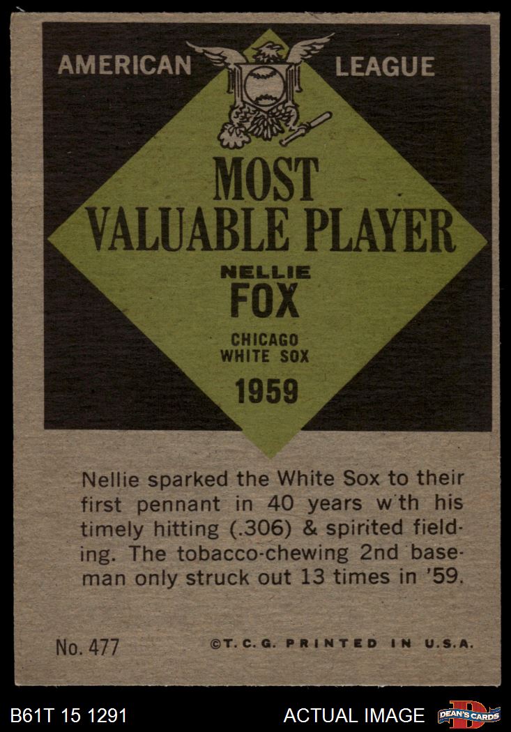 1961 Topps #477 - Nellie Fox Most Valuable Player 3 - VG