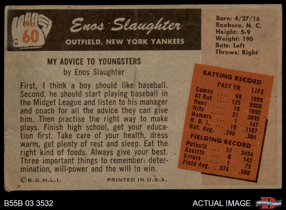 1955 Bowman #60 Enos Slaughter 2 - GOOD
