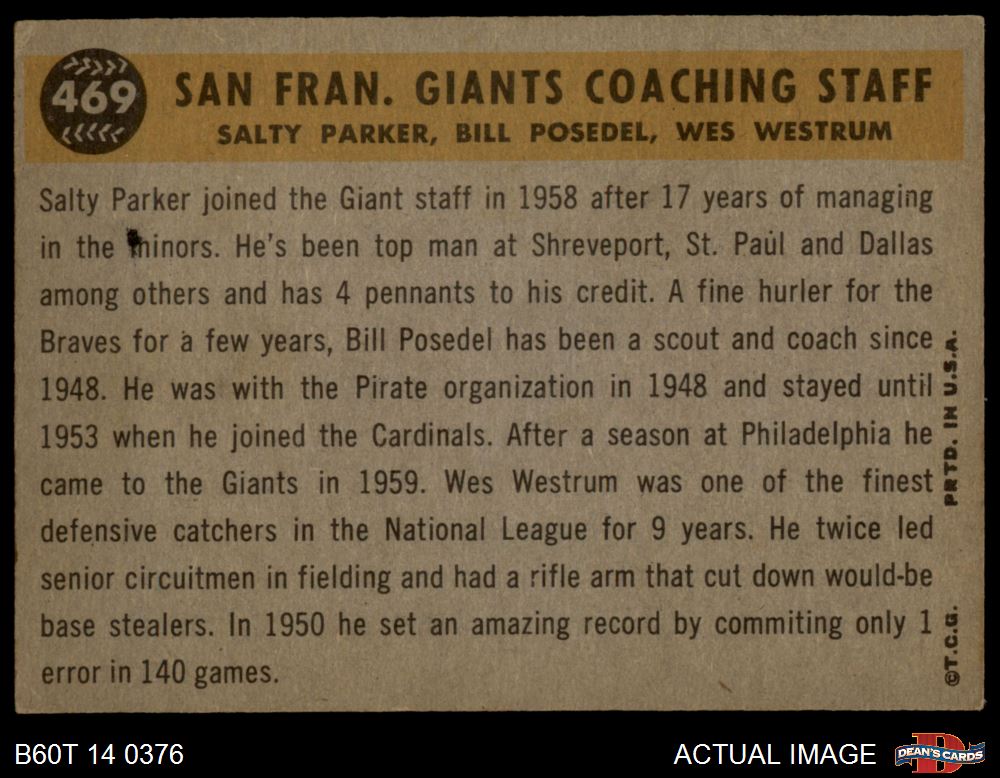 Wes Westrum / Salty Parker / Bill Posedel (15 available)