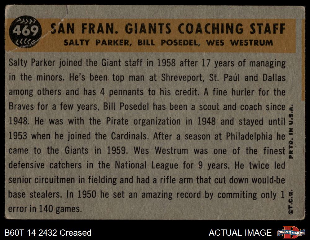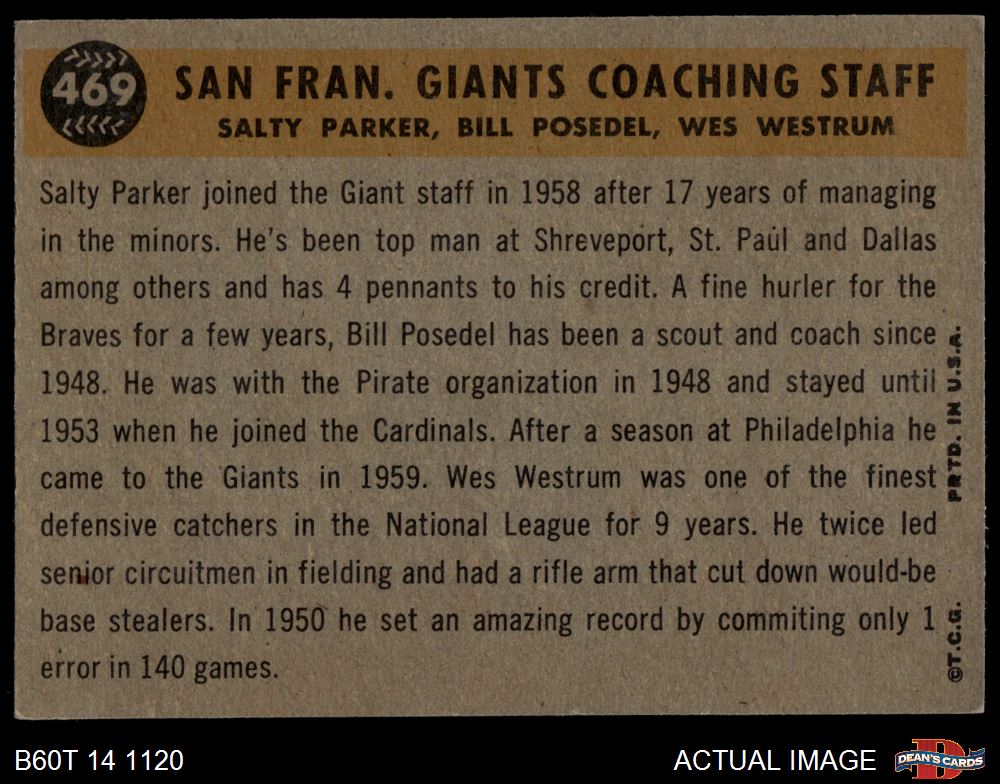 1960 Topps #469 Giants Coaches