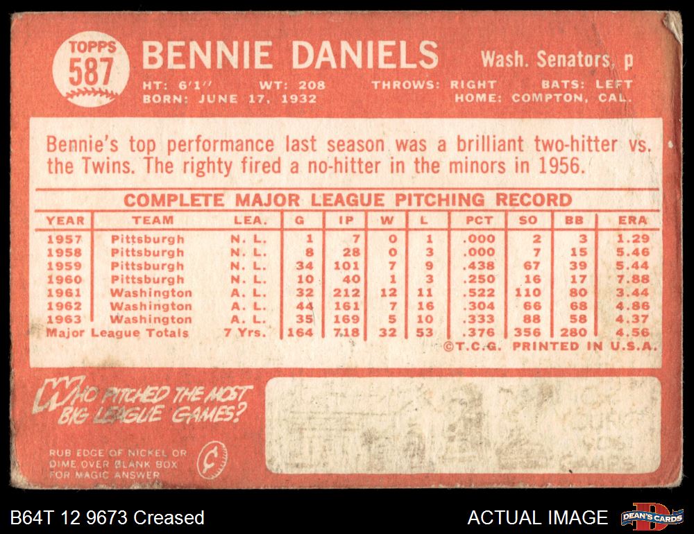 1964 Topps #587 Bennie Daniels 1.5 - FAIR