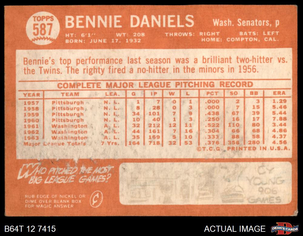1964 Topps #587 Bennie Daniels 2 - GOOD