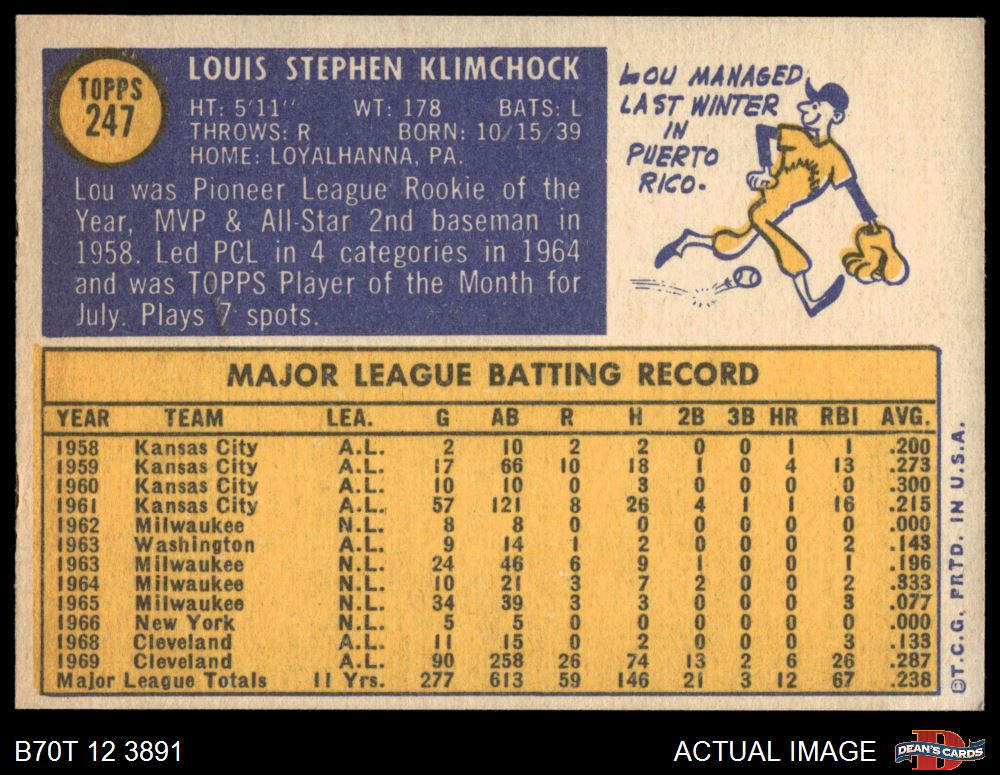 1970 Topps #247 Lou Klimchock