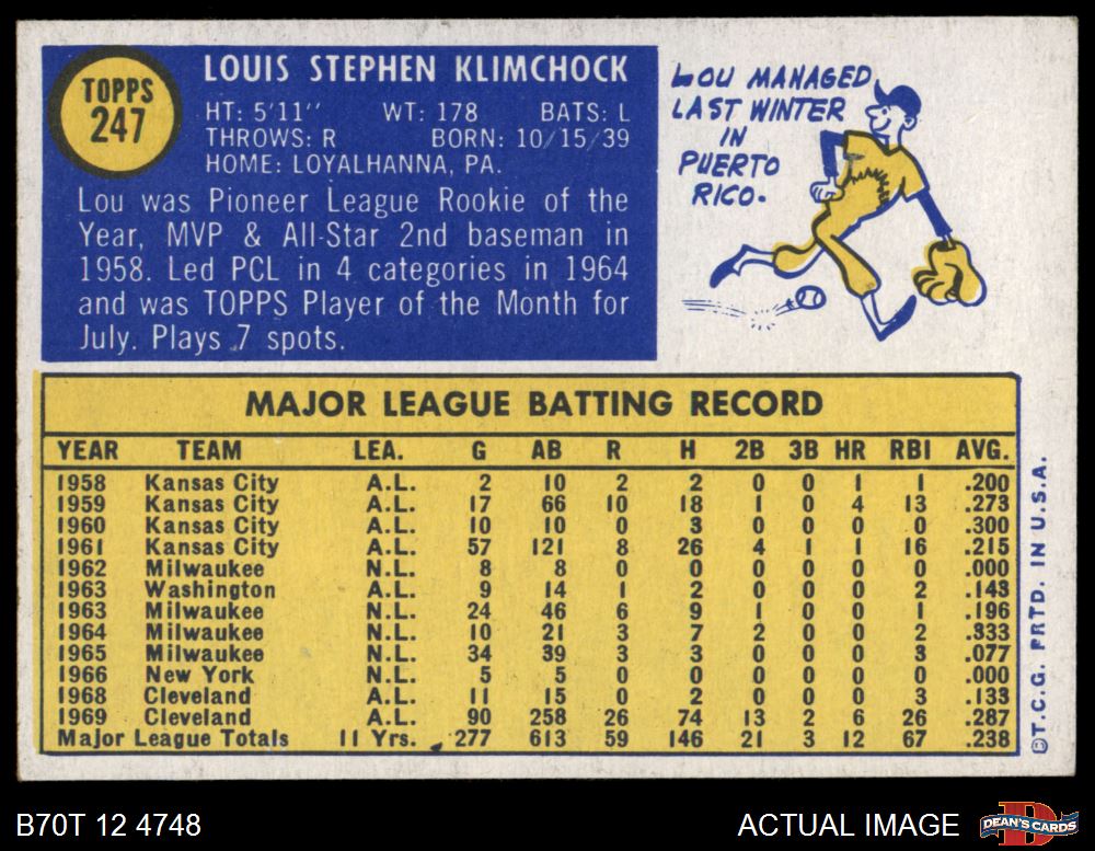 1970 Topps #247 Lou Klimchock 6.5 - EX/MT+