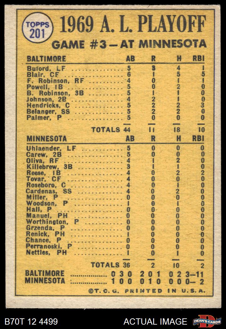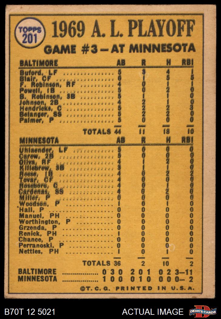 1970 Topps #201 - Boog Powell / Andy Etchebarren 1969 AL Playoff - Game 3 - Birds Wrap it Up 4 - VG/EX