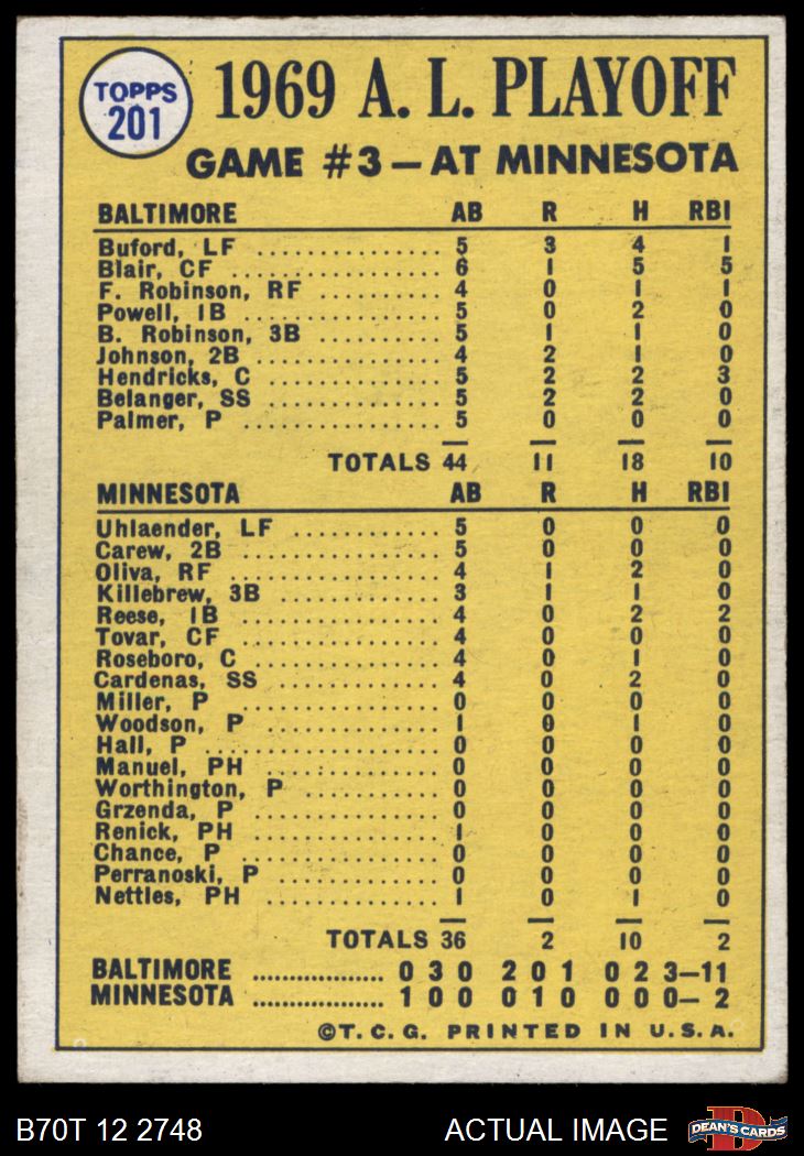 1970 Topps #201 - Boog Powell / Andy Etchebarren 1969 AL Playoff - Game 3 - Birds Wrap it Up 6 - EX/MT