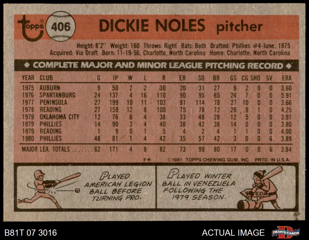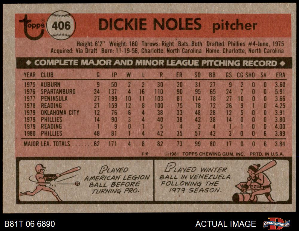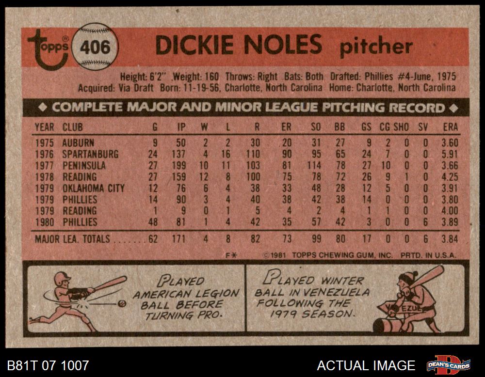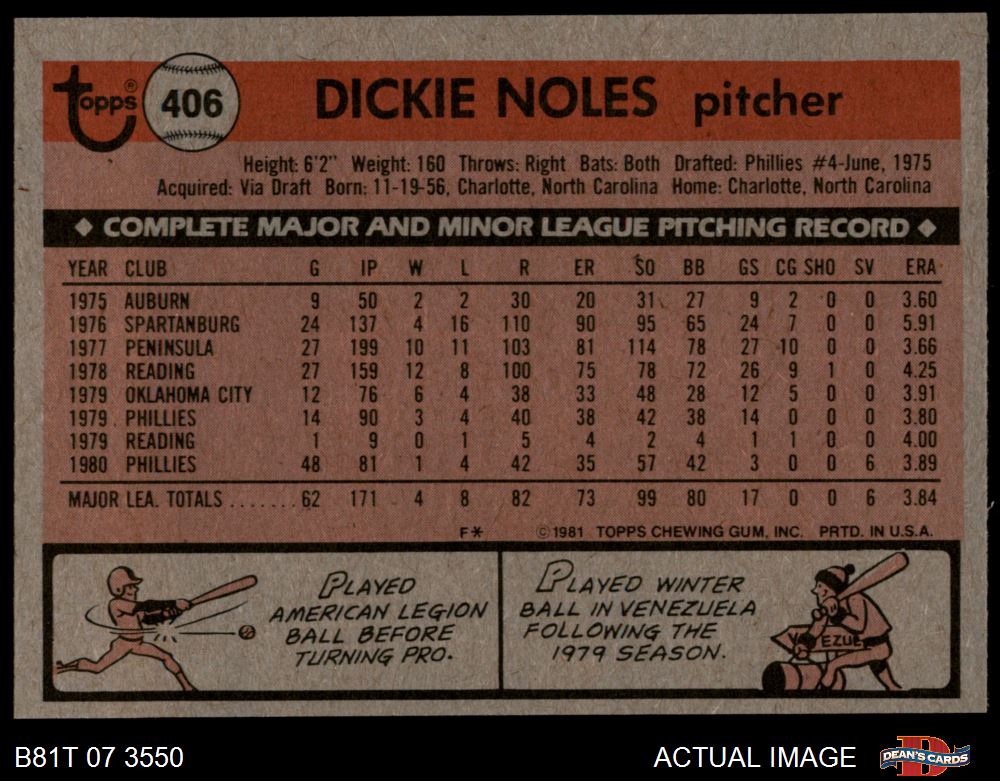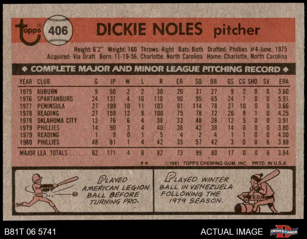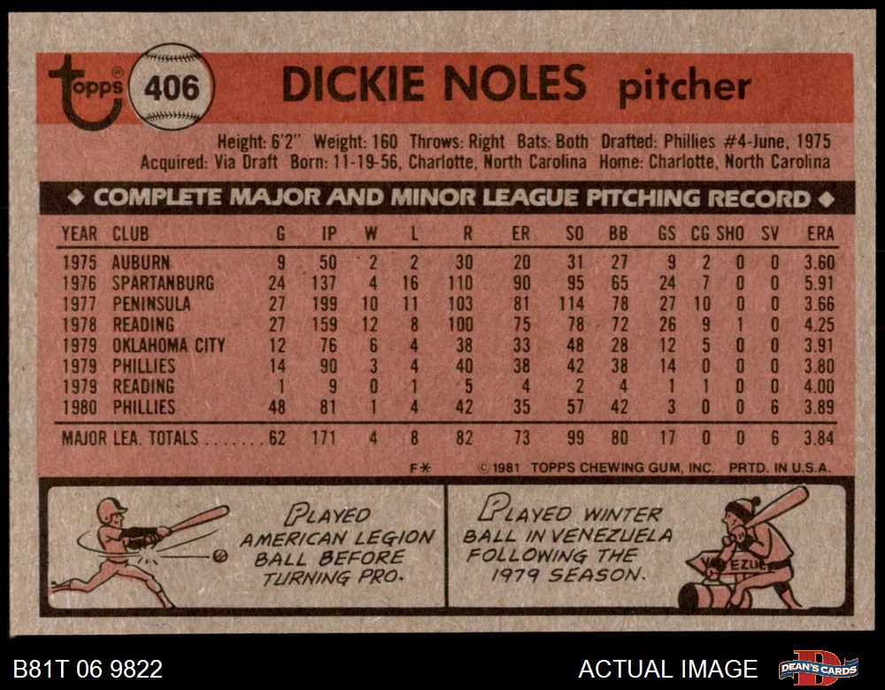 1981 Topps #406 Dickie Noles 7 - NM