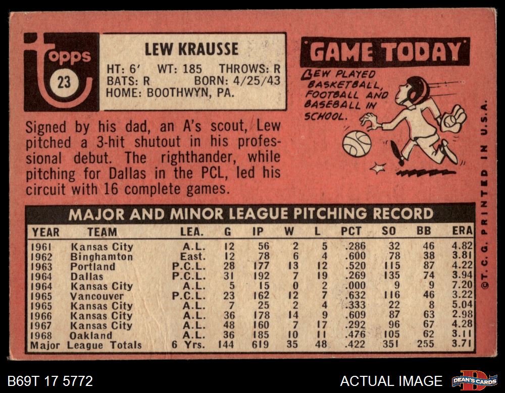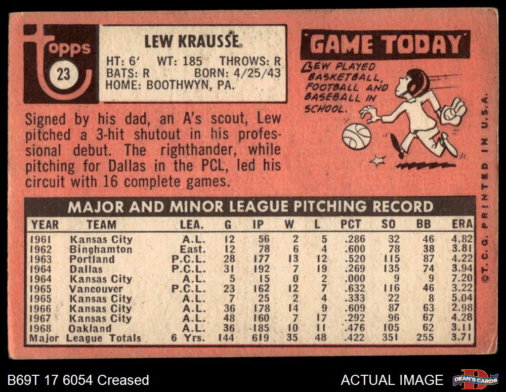 1969 Topps #23 Lew Krausse 2 - GOOD
