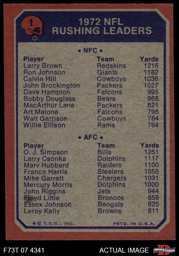 1973 Topps #1 - Larry Brown / O.J. Simpson / Larry Brown Rushing Leaders 8 - NM/MT