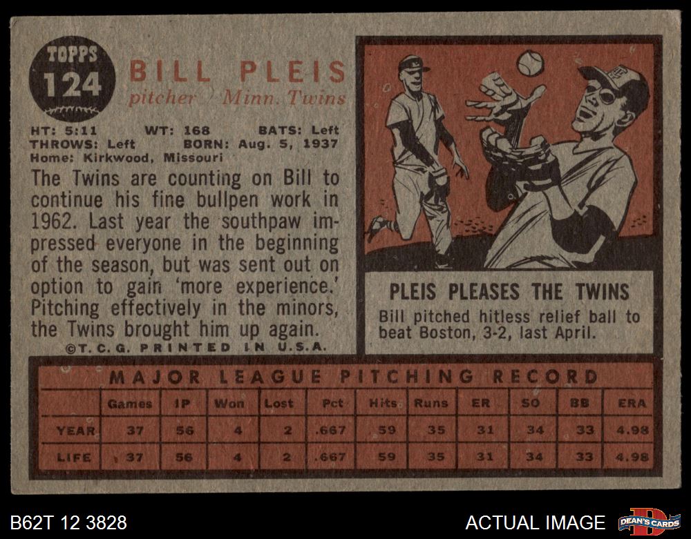 1962 Topps #124 GRN Bill Pleis 2 - GOOD