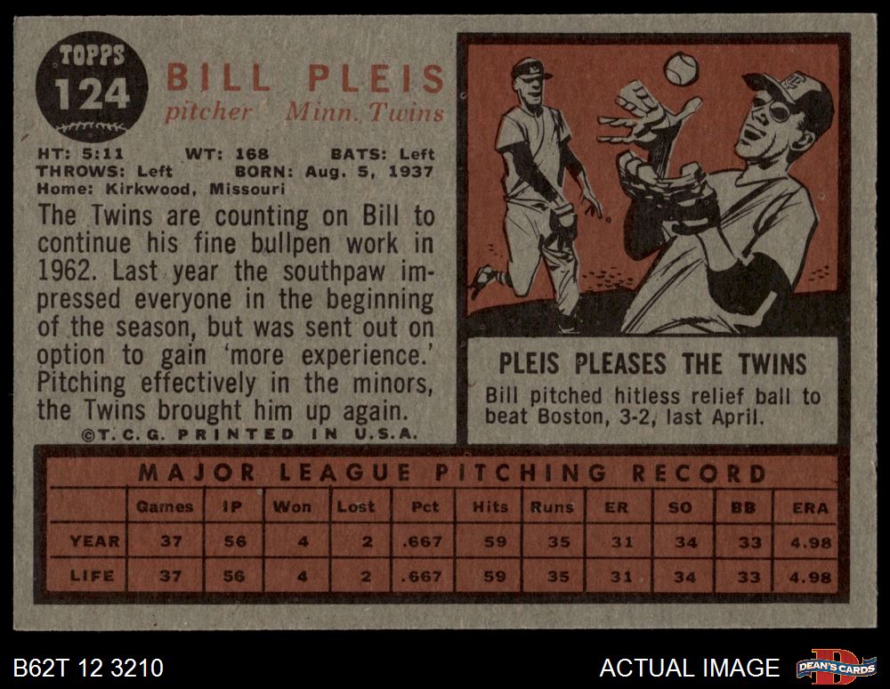 1962 Topps #124 GRN Bill Pleis 5 - EX
