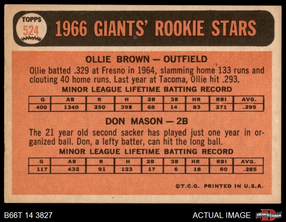 1966 Topps #524 Giants Rookies