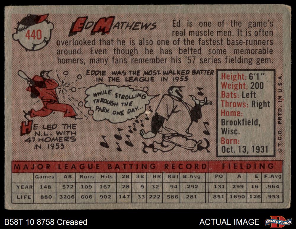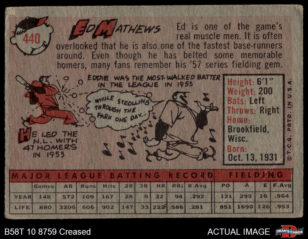 1958 Topps #440 Eddie Mathews