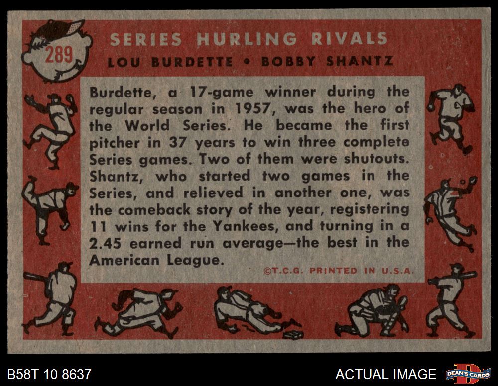 1958 Topps #289 Series Hurling Rivals