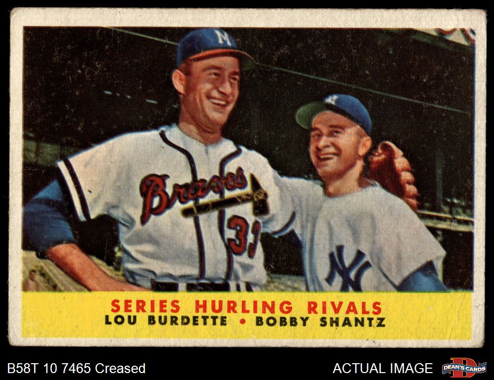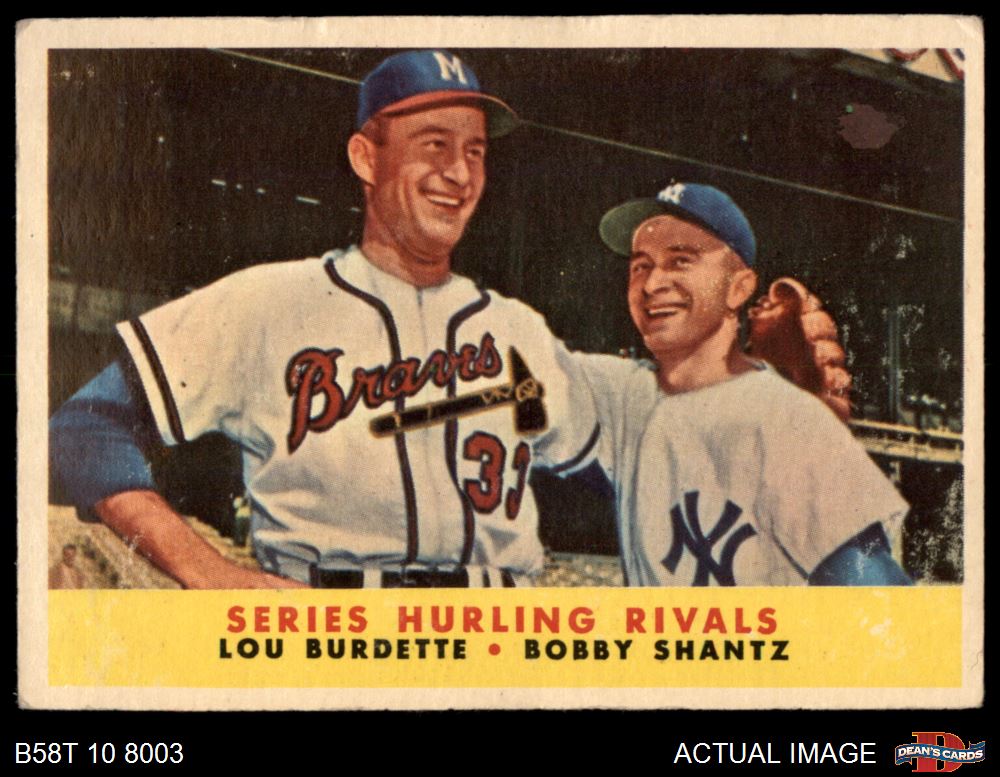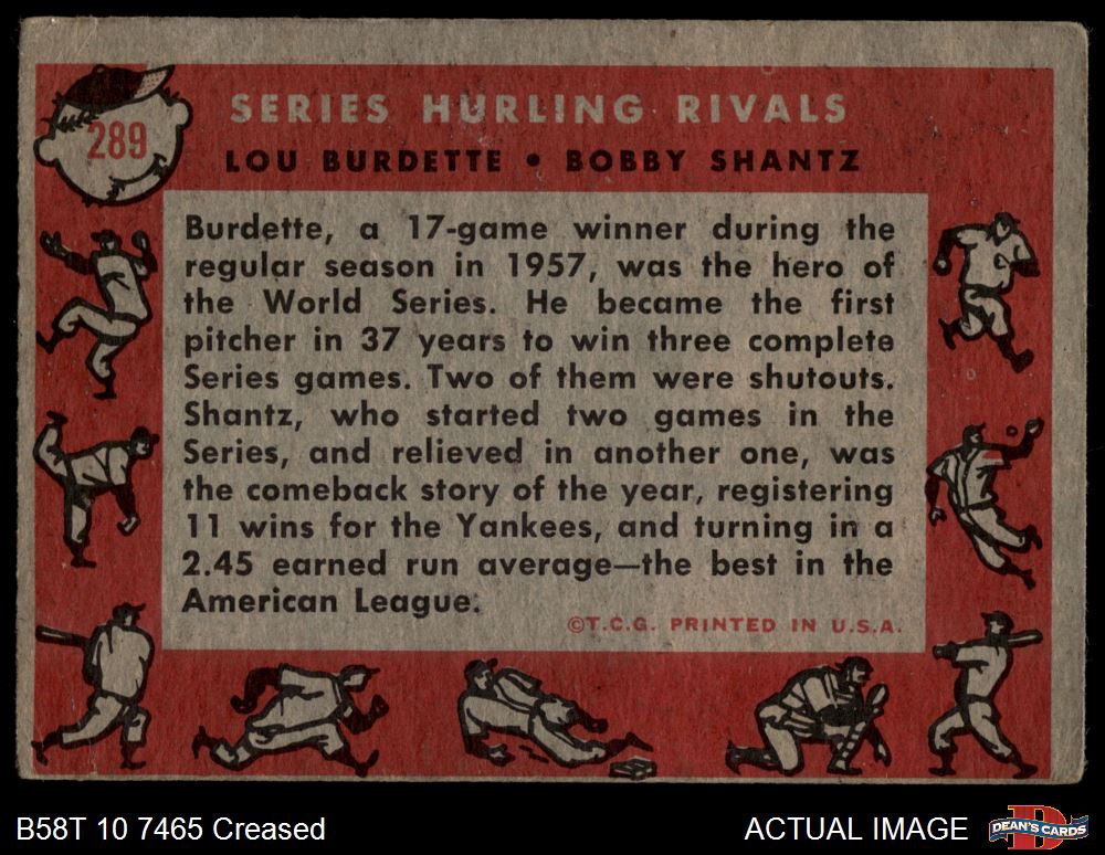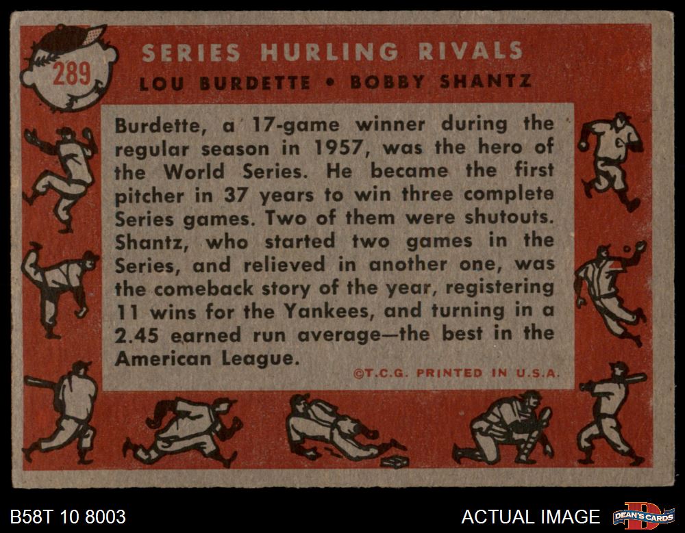 1958 Topps #289 - Lou Burdette / Bobby Shantz Series Hurling Rivals 2 - GOOD