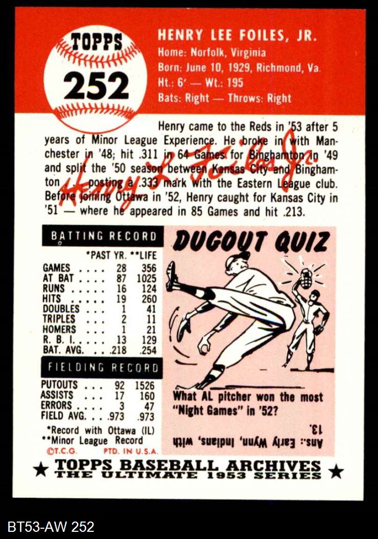 1953 Topps Archives #252 Hank Foiles 8 - NM/MT