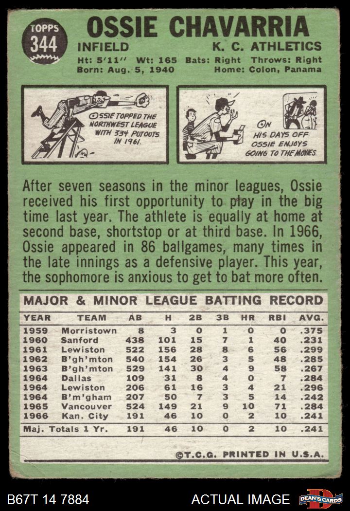 1967 Topps #344 Ossie Chavarria 1 - POOR
