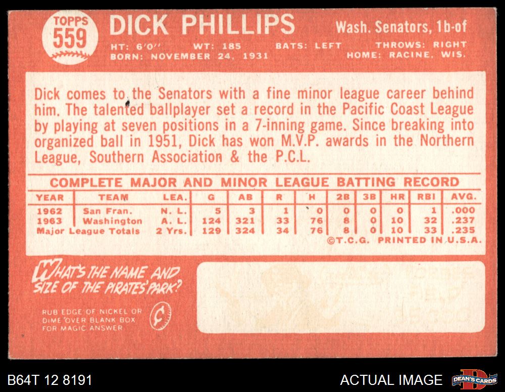 1964 Topps #559 Dick Phillips 3 - VG