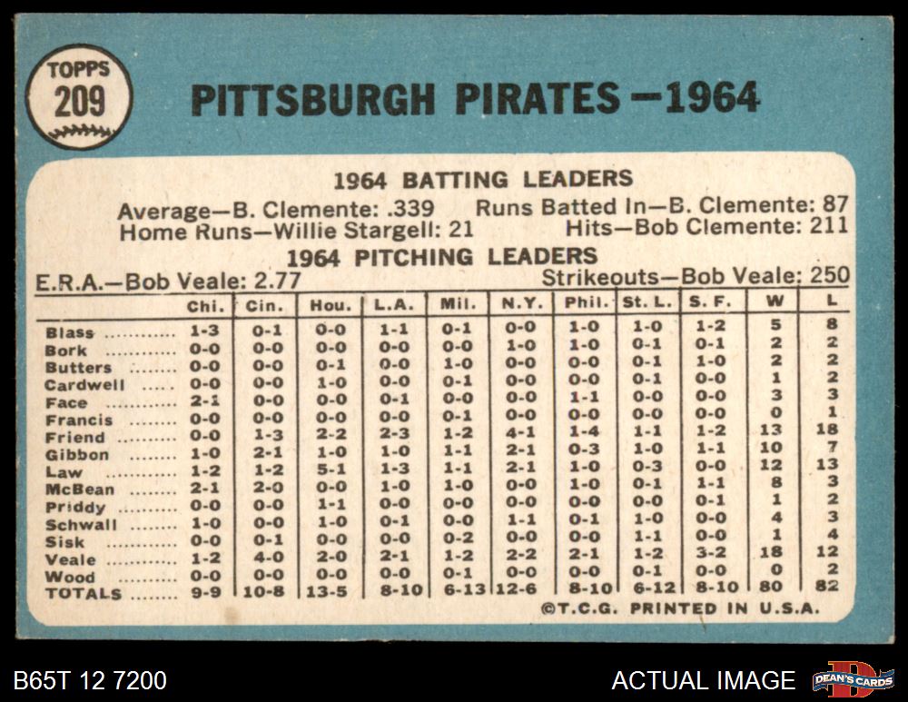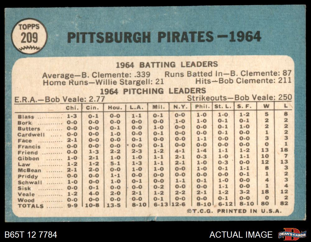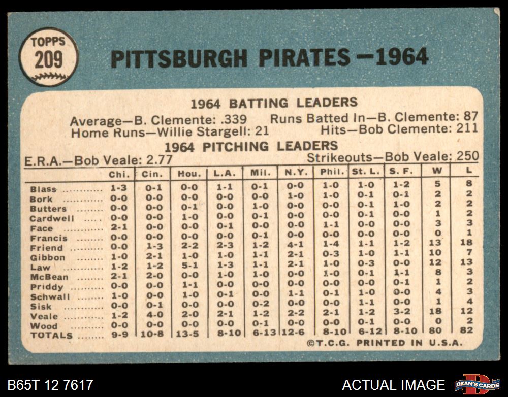 1965 Topps #209 Pirates Team