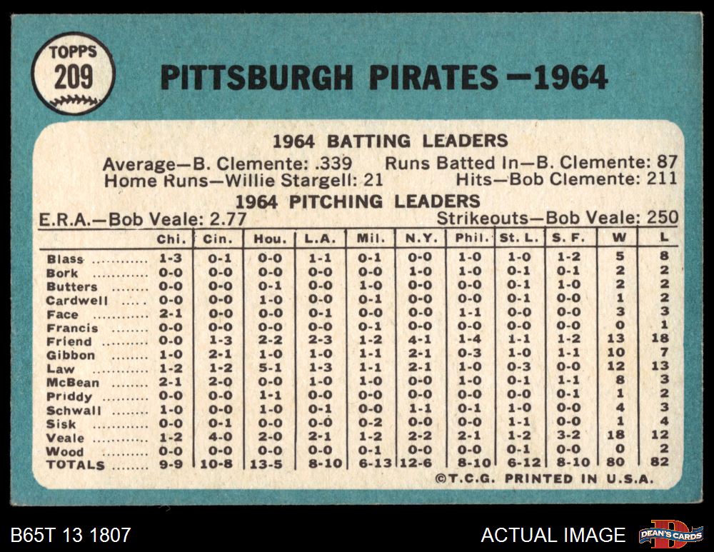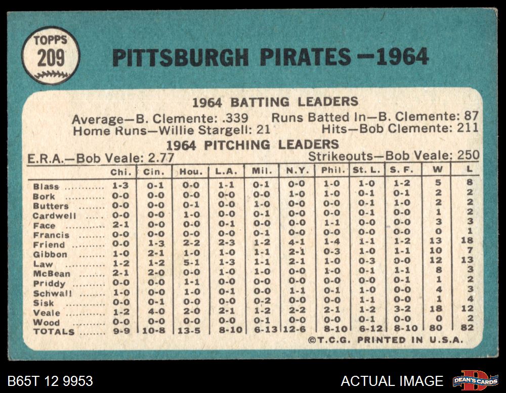 1965 Topps #209 Pirates Team 4 - VG/EX