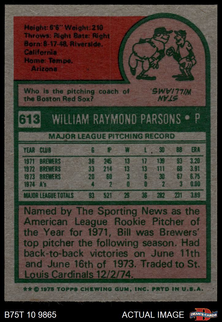1975 Topps #613 Bill Parsons 7.5 - NM+