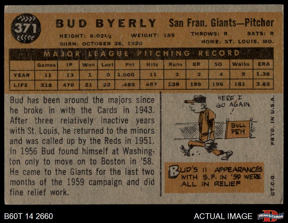 1960 Topps #371 Bud Byerly 4 - VG/EX