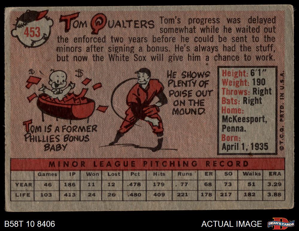 1958 Topps #453 Tom Qualters 2 - GOOD