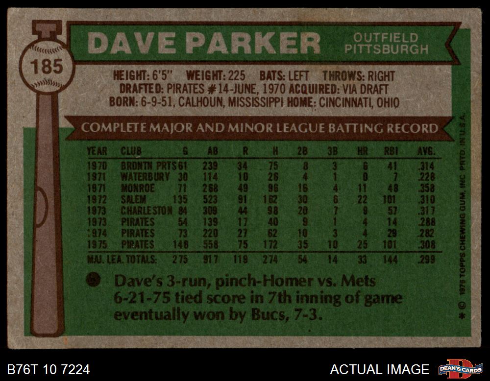 1976 Topps #185 Dave Parker 3.5 - VG+