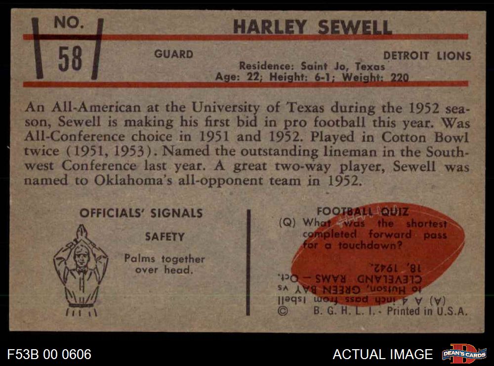 1953 Bowman #58 Harley Sewell