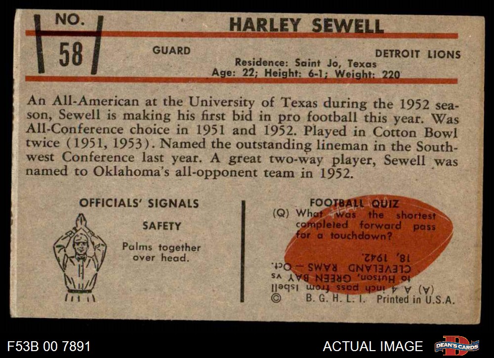 1953 Bowman Football Cards (275 available)1953 Bowman Lions (48 available)