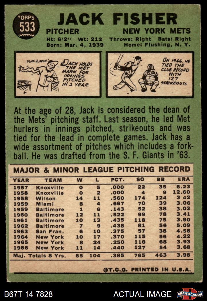 1967 Topps #533 Jack Fisher 4 - VG/EX
