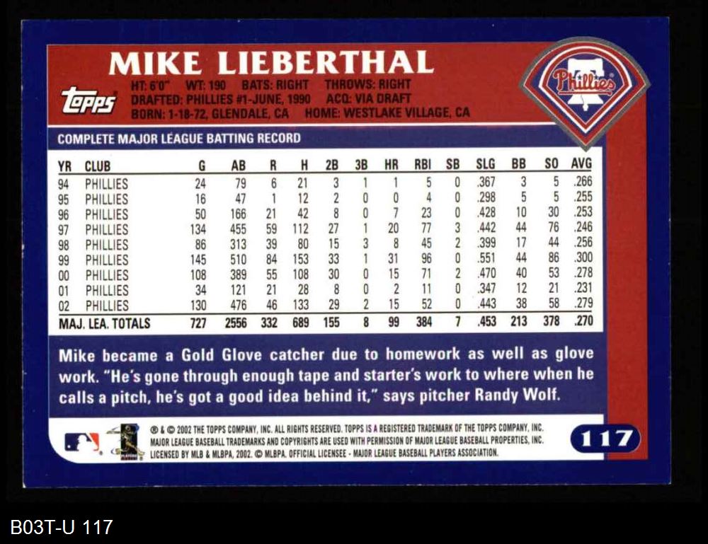 2003 Topps #117 Mike Lieberthal 8 - NM/MT