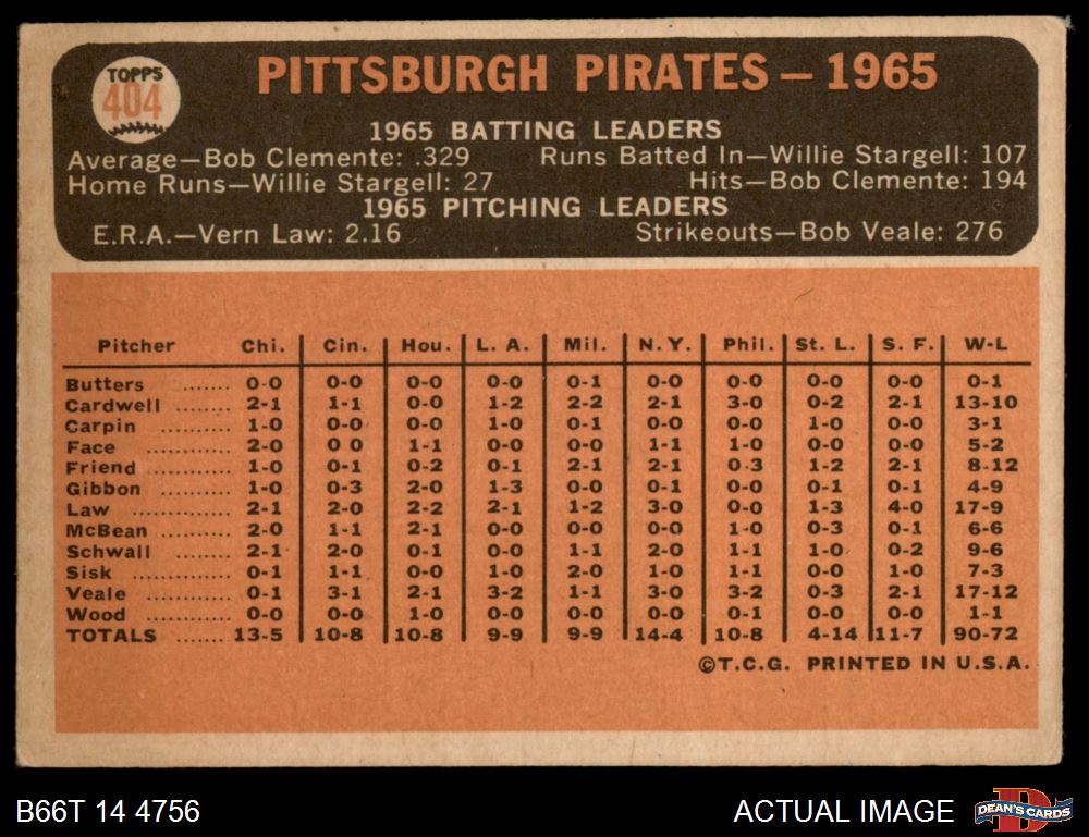 1966 Topps #404 DOT Pirates Team