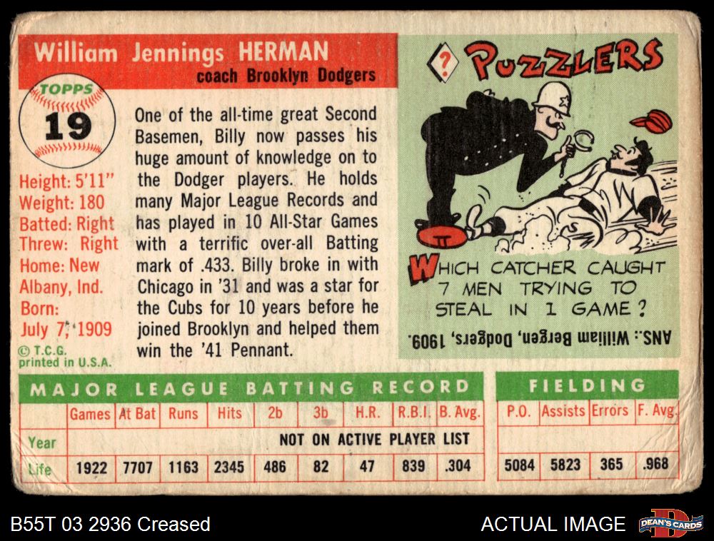 1955 Topps #19 Billy Herman 1 - POOR