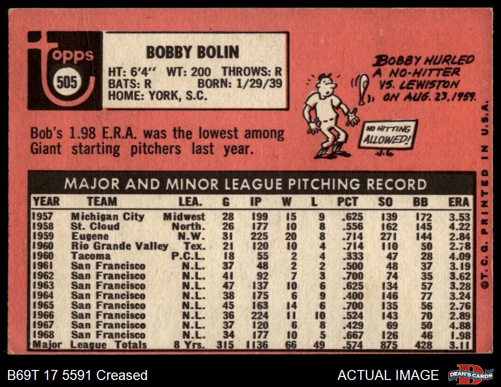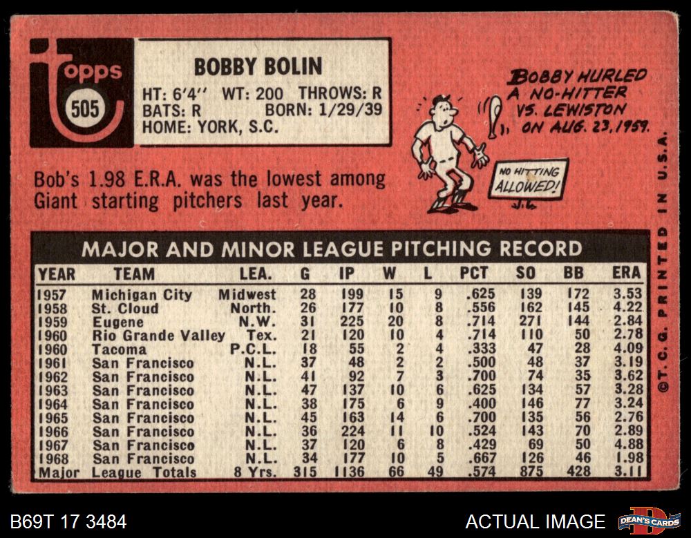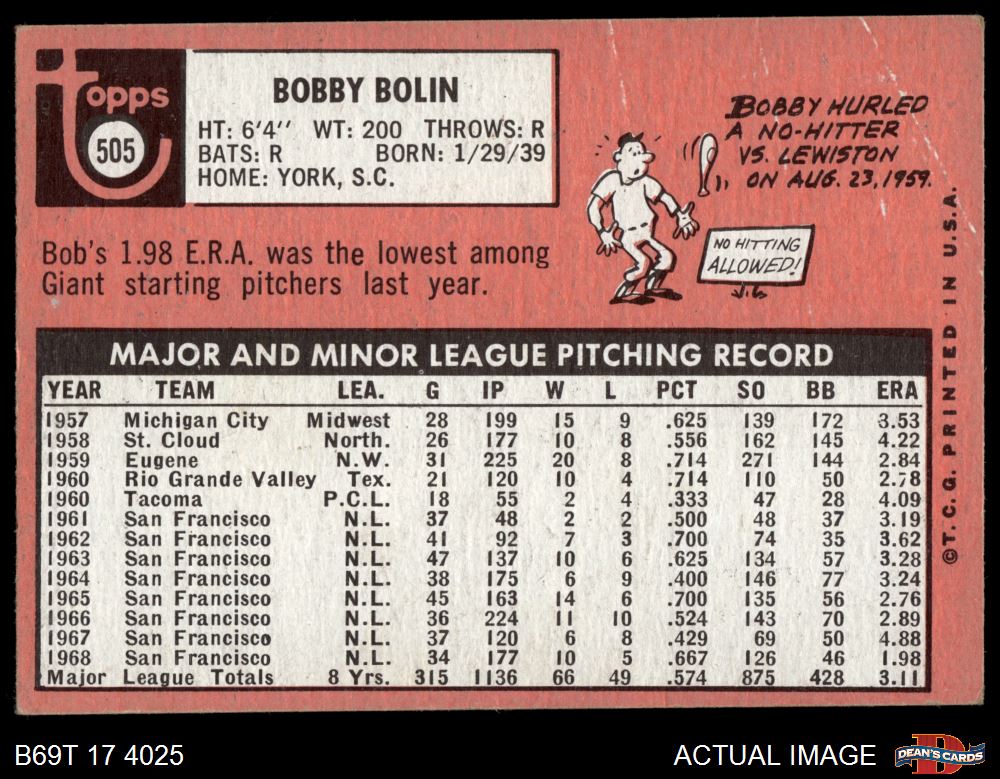 1969 Topps #505 YN Bobby Bolin