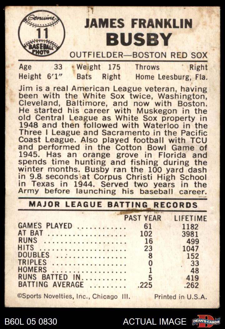 1960 Leaf #11 Jim Busby 2.5 - GD+