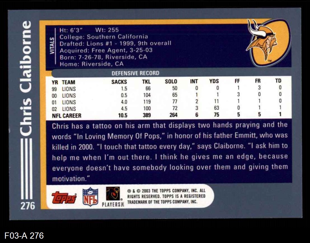 2003 Topps Football Cards (1,234 available)2003 Topps (6,593 available)