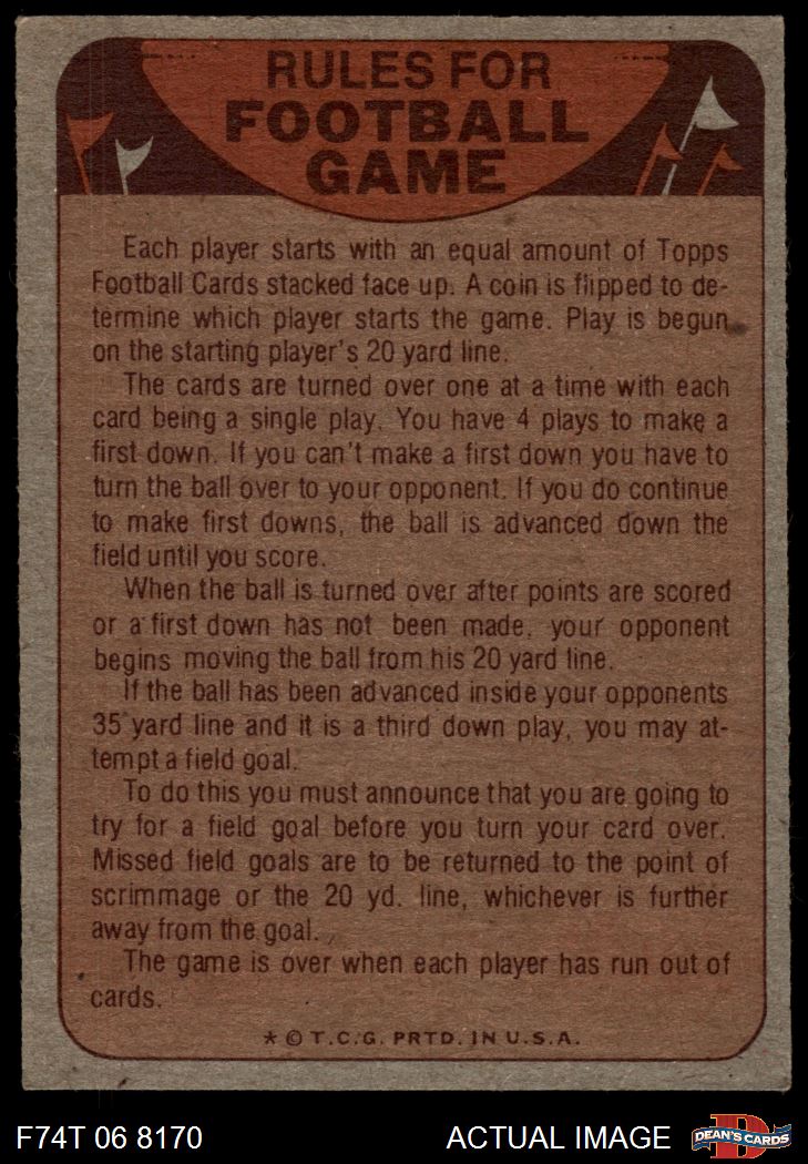 1974 Topps Football Cards (12,235 available)1974 Topps Checklist Chargers (11 available)