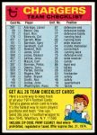 1974 Topps Checklist San Diego Chargers Team 8 - NM/MT