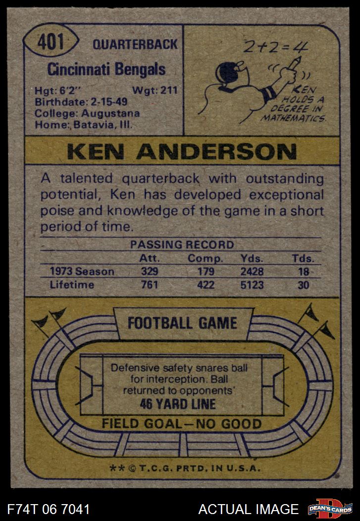 1974 Topps #401 Ken Anderson 6 - EX/MT