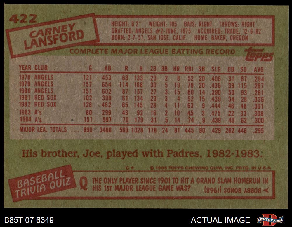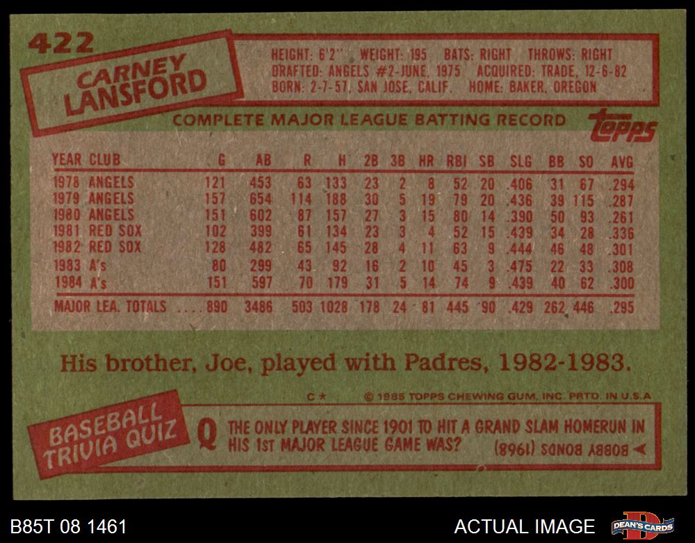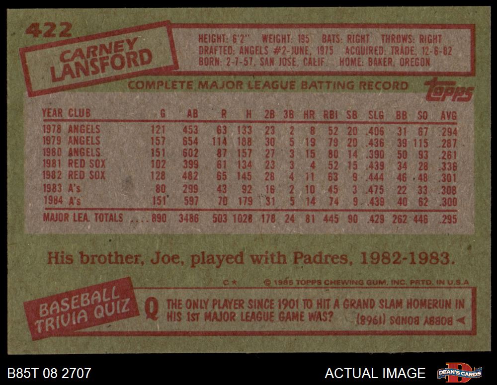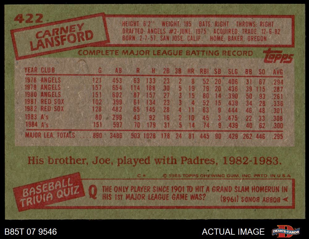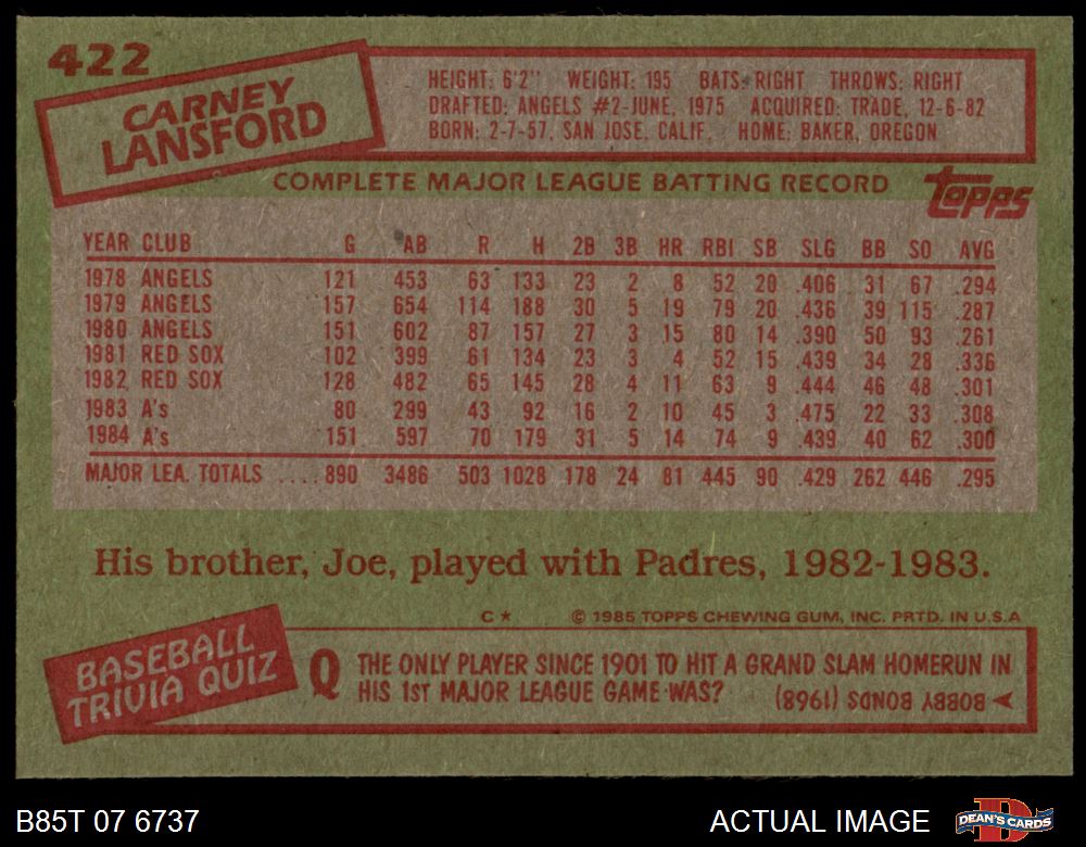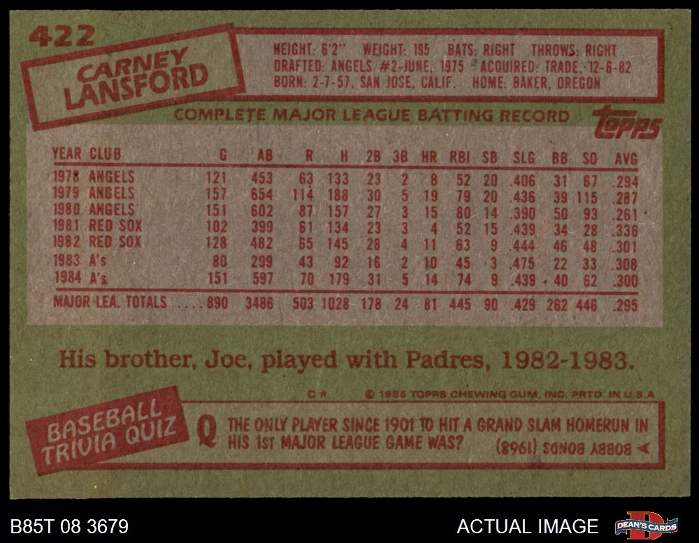 1985 Topps #422 Carney Lansford 8 - NM/MT